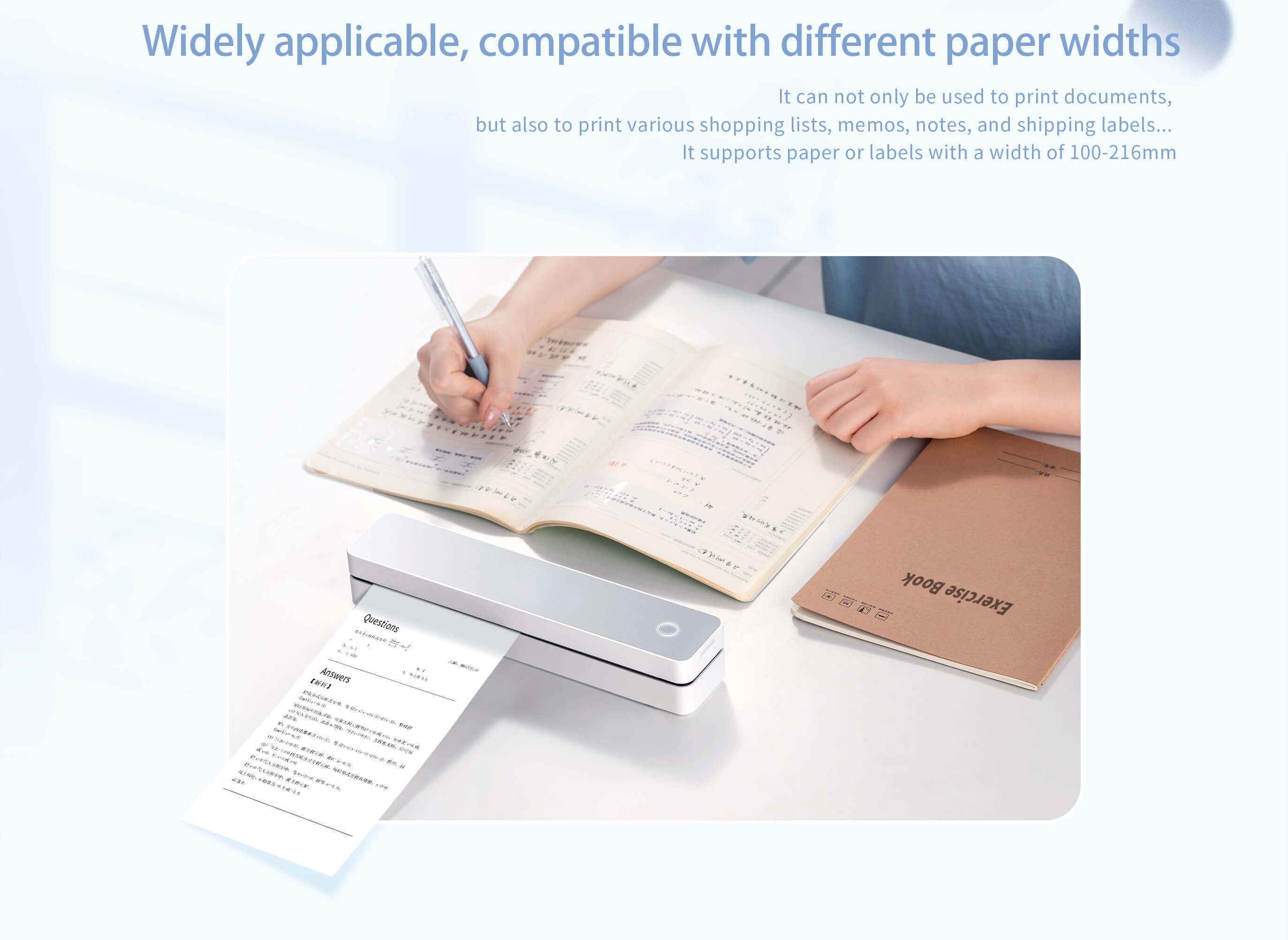 - Largura de impressão: 100 a 216 mm, tamanho Carta EUA, papel A4/A5